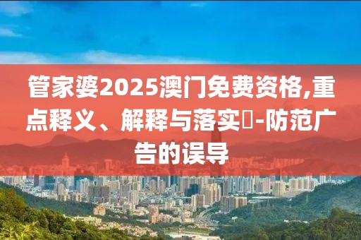 我们注意到网络上出现了关于“管家婆2025澳门免费资格”的关键词,不少公众可能受到相关广告或信息的误导,在此,我们希望通过本文全面释义、解释该关键词,并提醒公众警惕虚假宣传,防范广告的误导。